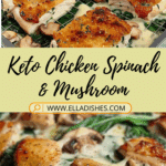 A creamy, cheesy keto chicken spinach and mushroom skillet dish packed with protein and low in carbs—perfect for meal prep or weeknight dinners.