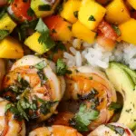 I store the shrimp, rice, salsa, and avocado separately in airtight containers in the fridge for up to 3 days. To reheat, I warm the shrimp and rice gently in the microwave or in a skillet, then assemble fresh bowls. I always slice the avocado just before serving so it stays vibrant and doesn’t brown.