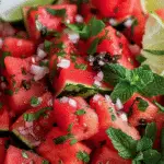 This Watermelon Lime Mint Salad is a simple yet stunning dish that brings together juicy fruit and a refreshing citrusy dressing in every bite. It’s the kind of salad I turn to when I want something light, colorful, and delicious — a true celebration of summer flavors.