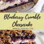 Blueberry Crumble Cheesecake with a buttery cookie crust, creamy baked cheesecake, juicy blueberries, and a golden crumble topping. A rich, bakery-style dessert perfect for special occasions.