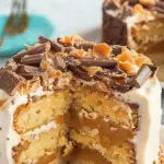 The best Butterfinger cake recipe with gooey caramel, fluffy whipped topping, and crunchy chocolate candy pieces for an irresistible dessert everyone will love.