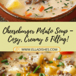 I love this soup because it brings together the familiar flavors of a cheeseburger with the warmth and comfort of a creamy potato soup. It’s a full meal in a bowl, with meat, veggies, and a velvety cheese base that makes every bite rich and satisfying. Whether I’m feeding a family or just craving something cozy, this soup is always a hit. Plus, it’s freezer-friendly and reheats beautifully for leftovers.
