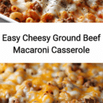 This cheesy beef and macaroni casserole is the ultimate comfort food, made with tender pasta, rich tomato-beef sauce, and a creamy, cheesy filling baked to golden perfection. It’s hearty, satisfying, and perfect for family dinners or meal prep.