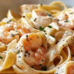 This creamy shrimp fettuccine pasta is a simple and satisfying dinner made with buttery Alfredo sauce, Parmesan cheese, and perfectly cooked shrimp. A comforting pasta dish for busy weeknights or cozy weekends.