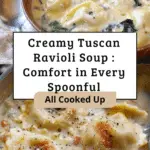 Creamy Tuscan Ravioli Soup : Comfort in Every Spoonful is rich, hearty, and packed with Italian sausage, cheese ravioli, sun-dried tomatoes, and spinach. This cozy one pot dinner is creamy, flavorful, and perfect for chilly nights.
