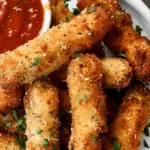 Description: Make golden, crunchy mozzarella sticks at home with simple ingredients and a flavorful breadcrumb coating, served with an easy marinara dipping sauce.