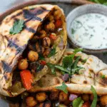 I love that this meal brings together Mediterranean-inspired spices, grilled textures, and creamy coolness in every bite. It’s packed with protein and fiber from the chickpeas and veggies, and the yogurt sauce adds just the right amount of brightness. It’s also completely vegan, easy to make, and perfect for lunch or dinner. The recipe is super adaptable—great for meal prep or for switching up the fillings based on what I have in the fridge.