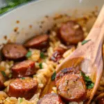A cozy one-pot dinner with browned smoked sausage, tender rice, peppers, onion, and Cajun-spiced broth—easy, flavorful, and perfect for busy weeknights.
