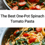 One-Pot Spinach Tomato Pasta is a quick, hearty vegetarian meal where pasta, tomatoes, and spinach simmer together in a flavorful broth, creating a rich sauce with minimal effort and cleanup.