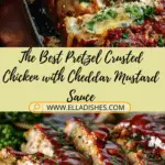 Crispy pretzel-crusted chicken baked to golden perfection and served with a creamy mustard-cheddar sauce — this dinner is bold, fun, and flavor-packed.