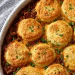 Leftovers store well in the refrigerator for up to 3 days. I keep them covered in the baking dish or transfer them to an airtight container. To reheat, I microwave individual portions or pop the whole dish back in the oven at 325°F until warmed through. The biscuits hold up surprisingly well and reheat nicely without getting soggy.