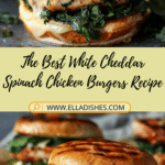 The Best tender chicken burgers with melted white cheddar and fresh spinach perfectly seasoned for a juicy and delicious bite every time.