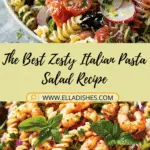 Fresh and flavorful Zesty Italian Pasta Salad Recipe loaded with bowtie pasta, cherry tomatoes, olives, salami, mozzarella balls, and tangy vinaigrette. This easy cold pasta salad is perfect for summer picnics, potlucks, and BBQ parties.